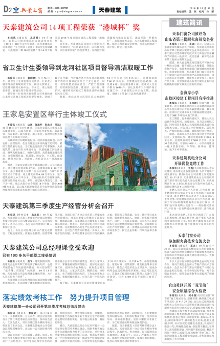 - 天泰建筑公司14項(xiàng)工程榮獲“港城杯”獎(jiǎng)