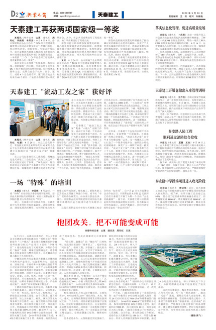 天泰建工再獲兩項國家級一等獎