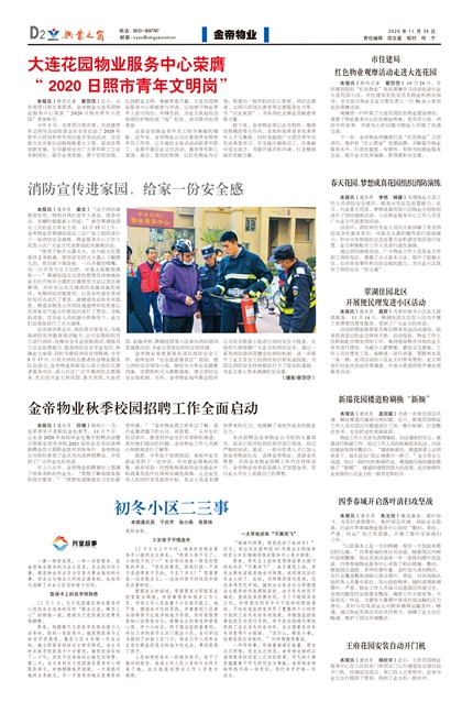 大連花園物業(yè)服務中心榮膺“2020日照市青年文明崗”