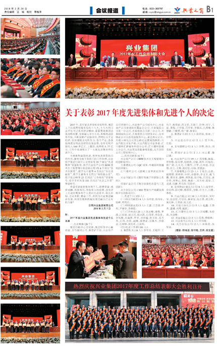 關于表彰2017年度先進集團和先進個人的決定