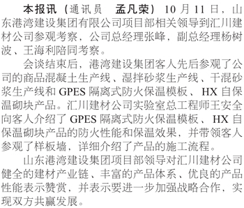 山東港灣建設(shè)集團(tuán)到匯川建材公司考察