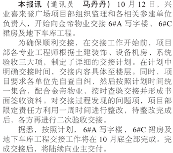 喜來登廣場交接部分驗(yàn)收完畢工程
