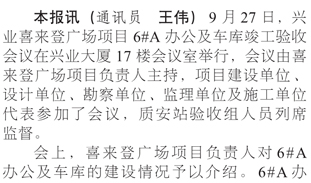 喜來登廣場6#A辦公及車庫通過竣工驗收
