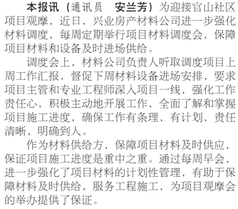 興業(yè)房產(chǎn)材料公司強(qiáng)化官山社區(qū)材料調(diào)度