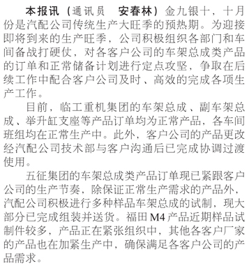 興業(yè)汽配公司全力保障車架產(chǎn)品訂單