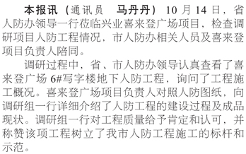 省人防辦領(lǐng)導(dǎo)蒞臨興業(yè)喜來登廣場調(diào)研