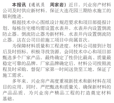 給水新材料落戶興業(yè)大連花園三期