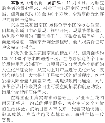 興業(yè)玉蘭花園南區(qū)3#樓應(yīng)市加推
