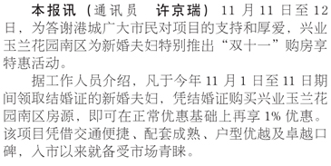 興業(yè)玉蘭花園新婚夫婦雙11購房享特惠