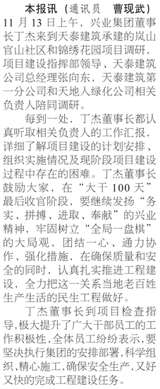 丁杰董事長到官山社區(qū)和錦繡花園項(xiàng)目工地檢查指導(dǎo)工作