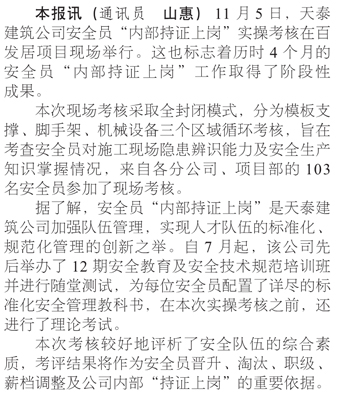 天泰建筑安全員內(nèi)部持證上崗工作扎實(shí)推進(jìn)