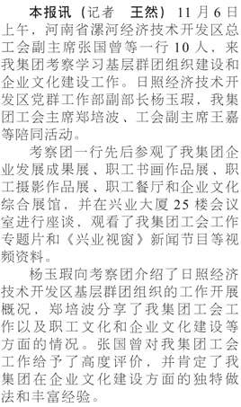 河南漯河開發(fā)區(qū)總工會(huì)來我集團(tuán)考察