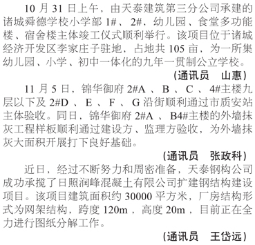 天泰建筑公司部分在建項(xiàng)目進(jìn)展順利