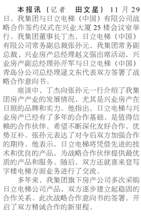 我集團(tuán)與日立電梯簽署戰(zhàn)略合作協(xié)議