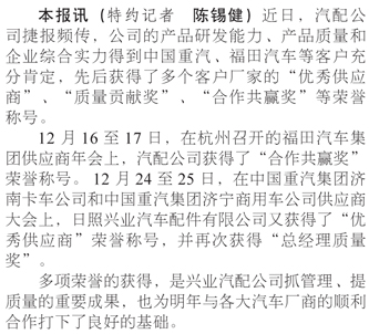 興業(yè)汽配獲“優(yōu)秀供應(yīng)商”等多個榮譽稱號