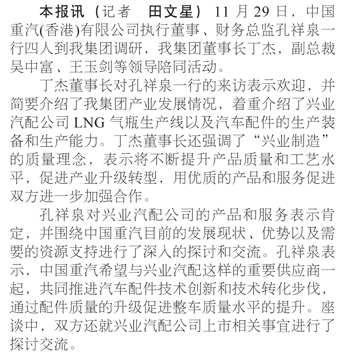 中國重汽執(zhí)行董事孔祥泉一行來我集團調(diào)研