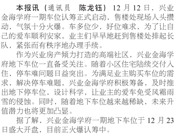 興業(yè)金海學(xué)府一期地下車位認籌啟動