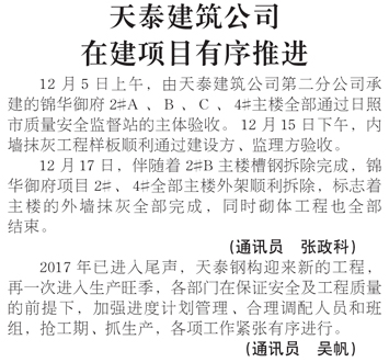 天泰建筑公司在建項(xiàng)目有序推進(jìn)