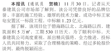 天泰建筑中標(biāo)王家皂安置區(qū)一標(biāo)段工程