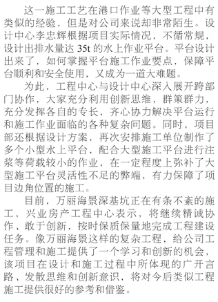 采用剛性錨桿設(shè)計(jì) 首創(chuàng)水上作業(yè)平臺