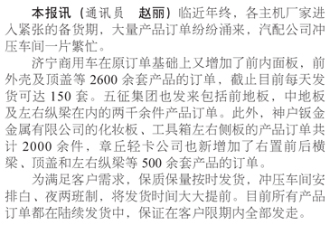 汽配公司沖壓車間再接大批量產(chǎn)品訂單