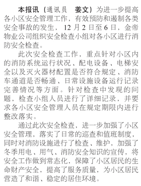 金帝物業(yè)組織消防、電梯安全大檢查