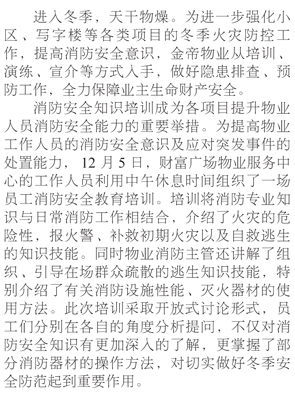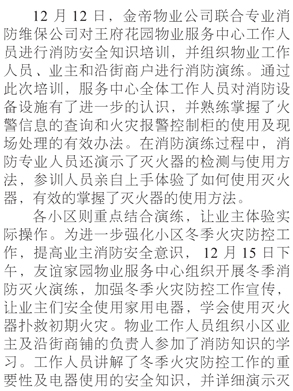 金帝物業(yè)公司多措做好冬季消防安全工作