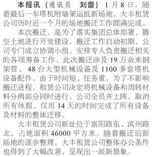 大豐租賃公司搬遷工作圓滿完成