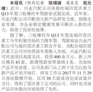 福田雷沃重工Q13車型駕駛室試裝完成