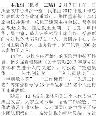 我集團(tuán)2017年度工作總結(jié)表彰大會隆重召開