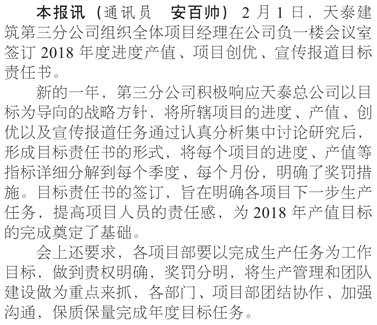 天泰建筑第三分公司組織項目經(jīng)理簽訂2018年度目標責任書