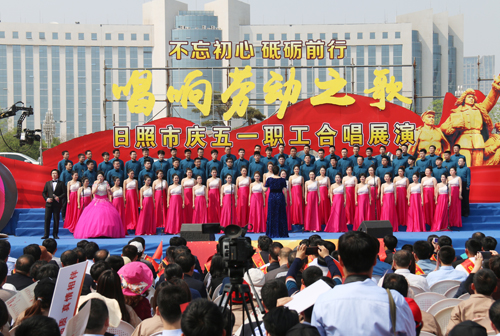 本報訊(記者 王瑜)春風和暢,歌聲飛揚。4月28日下午2點10分,為隆重慶祝五一國際勞動節(jié),大力弘揚勞模精神、工匠精神,“不忘初心砥礪前行——唱響勞動之歌”日照市慶五一職工合唱展演在市政府廣場隆重舉行。