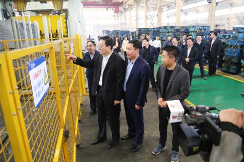 考察組一行先后來到縱梁車間和沖壓車間,現(xiàn)場(chǎng)了解了興業(yè)汽配公司的生產(chǎn)經(jīng)營情況,重點(diǎn)參觀考察了自動(dòng)上下料系統(tǒng)以及全自動(dòng)點(diǎn)焊機(jī)器人生產(chǎn)線。丁杰董事長向考察組介紹了興業(yè)汽配公司的發(fā)展歷程,尤其是近幾年在科研創(chuàng)新、“機(jī)器換人”等助推新舊動(dòng)能轉(zhuǎn)換方面所作出的不斷探索。